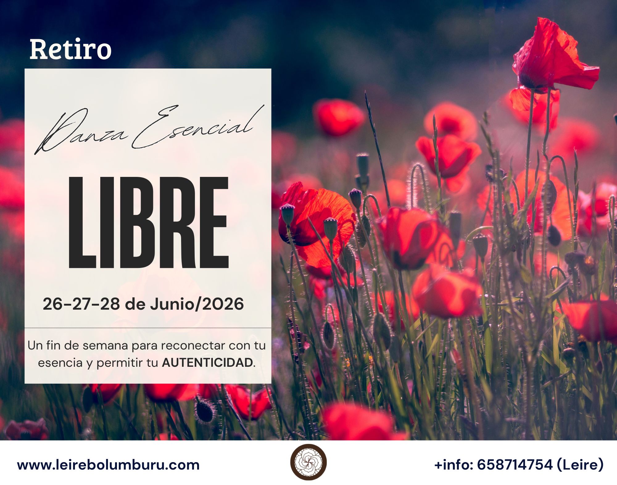 Con mucha alegría tengo el placer de invitarte a LIBRE, el Retiro de Danza Esencial, que se celebrará el próximo 26-27-28 de Junio de 2026 en Azala. (Lasierra, Araba).